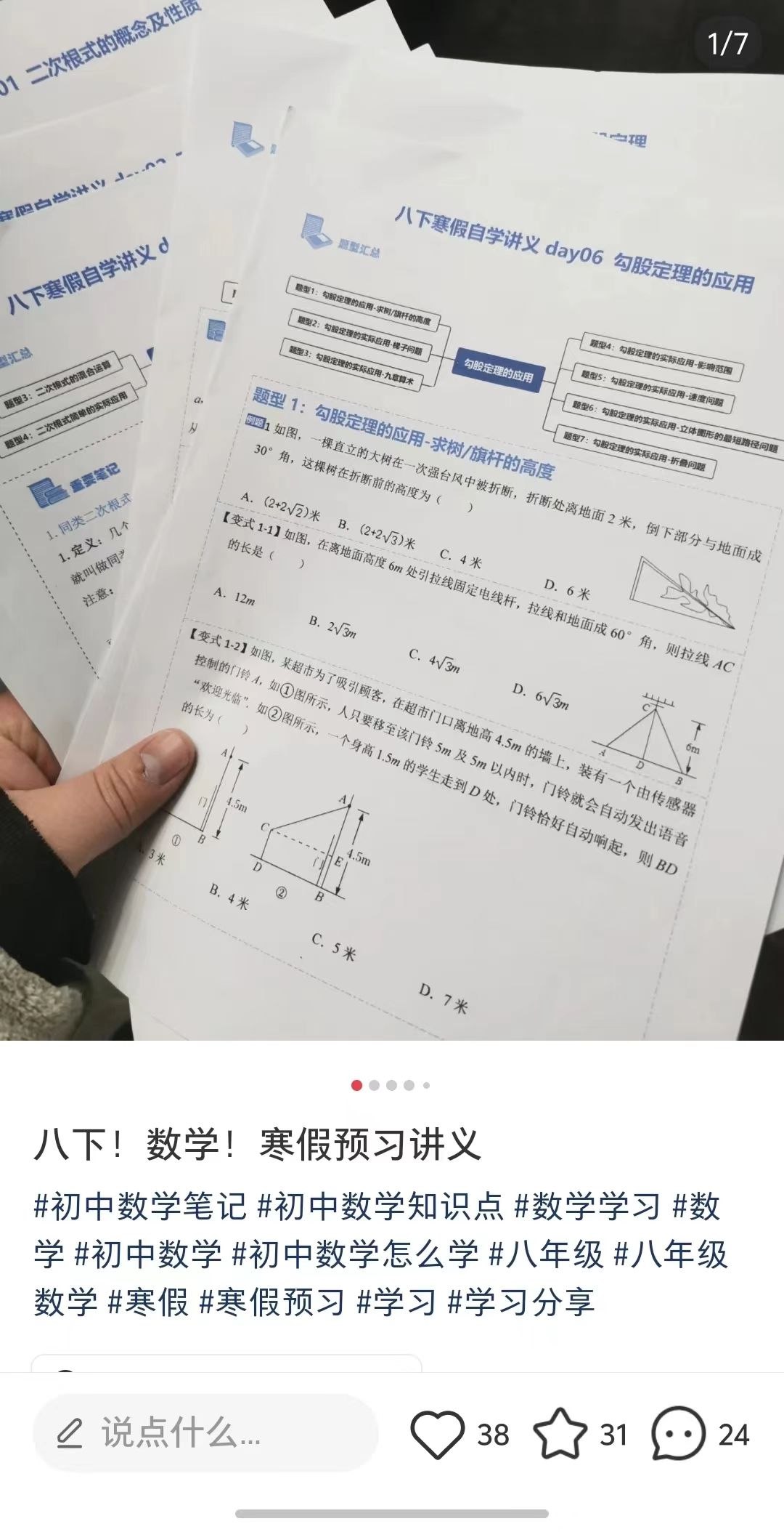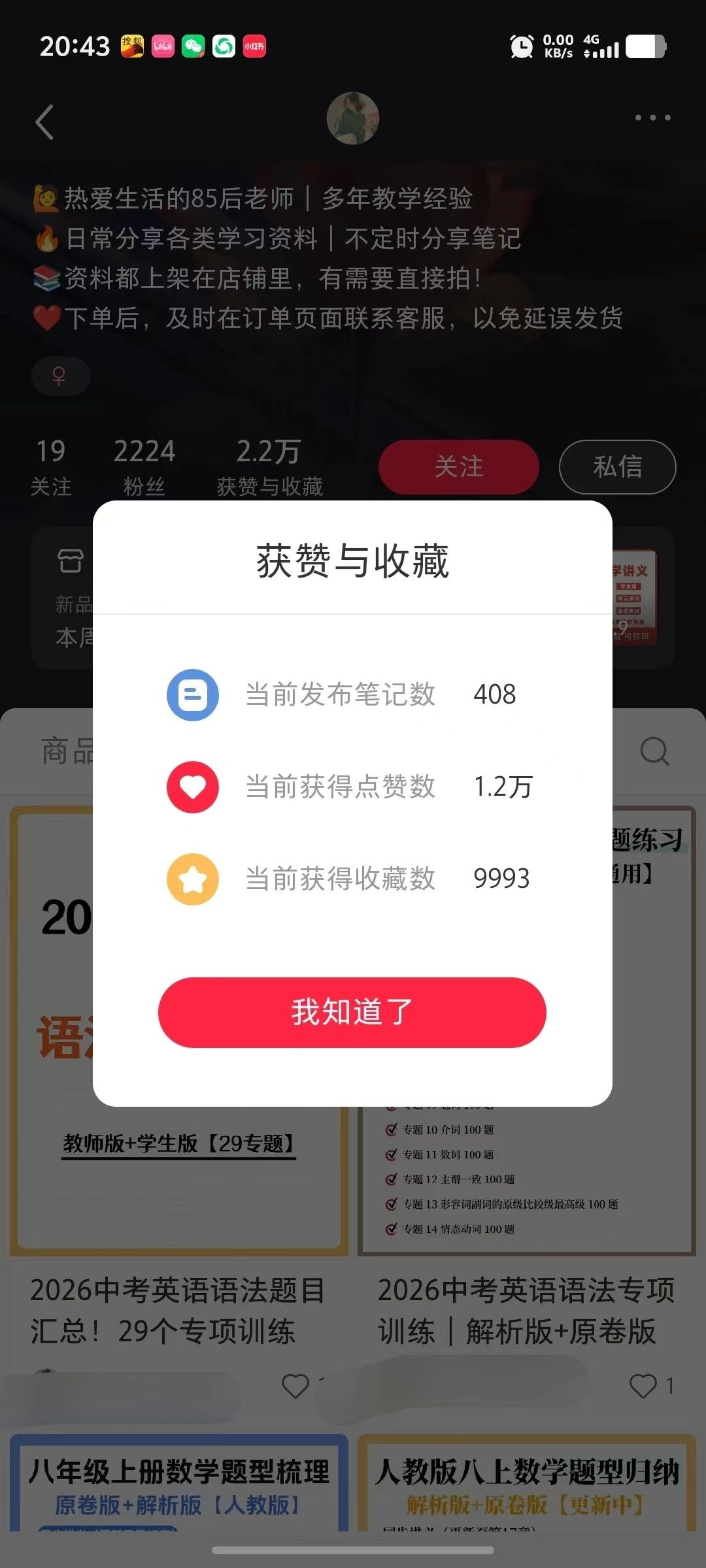 我在小红书上盯到了一个账号,这个博主做了8个月,只卖初中各科的复习讲义。